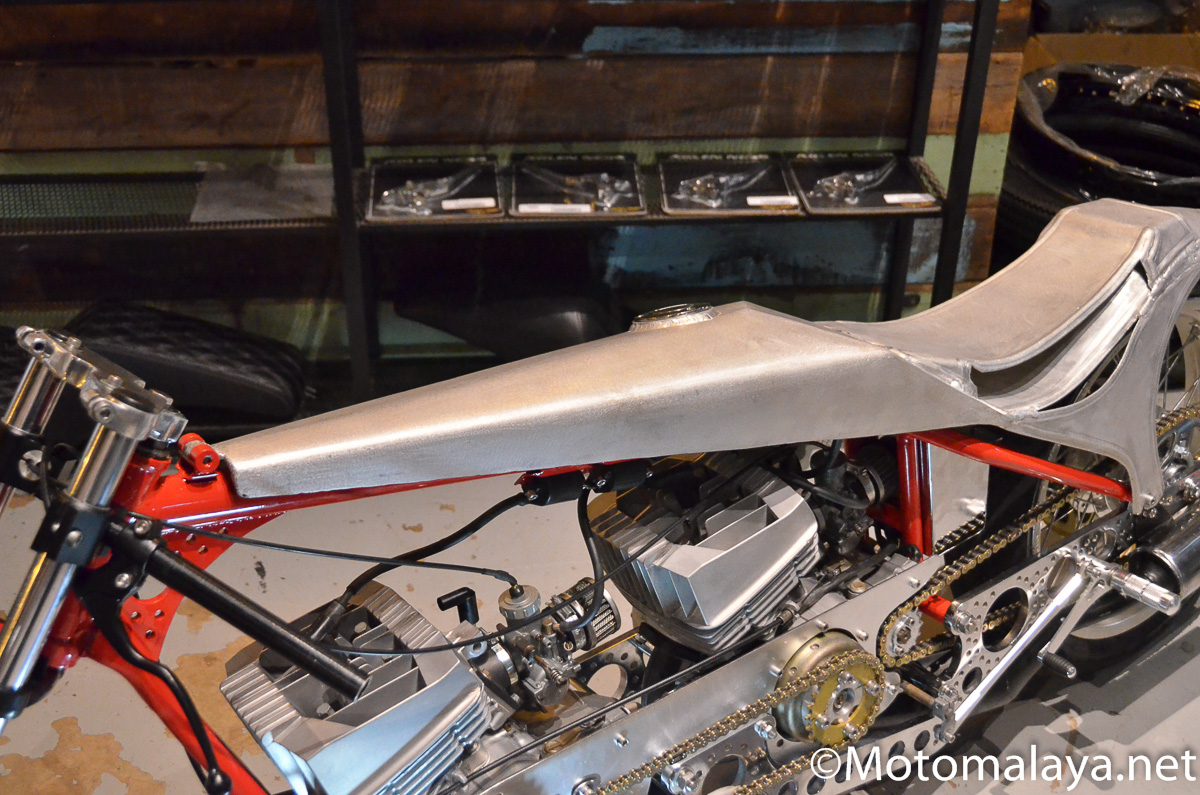 Dapra, tangki bahanapi, serta pelananya yang lain dari yang lain itu telah ditukang tangan menggunakan aluminium diilhamkan untuk mencapai dua objektif, untuk kelihatan dan mampu bergerak sepantas yang ia dapat pergi, bertepatan dengan nalurinya sebagai sebuah motosikal dragster. Kami juga ingin menerangkan yang keseluruhan badannya itu dapat diangkat bagi memudahkan capaian ke enjinnya seperti mana yang anda selalu lihat pada kereta dragster di Amerika Syarikat.