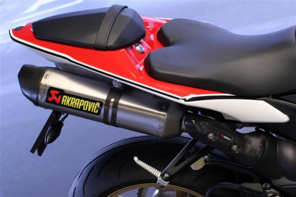 The bike comes with special parts like this Akrapovic exhaust system fitted as unveiled in Hilton Hotel in Amsterdam until December 24th. The YZF-R1 carries the overall theme of the Yamaha 50th Anniversary spectacular red livery with white base with the prominent yellow number 1 racer plate which is related to Giacomo Agostini winning bike.