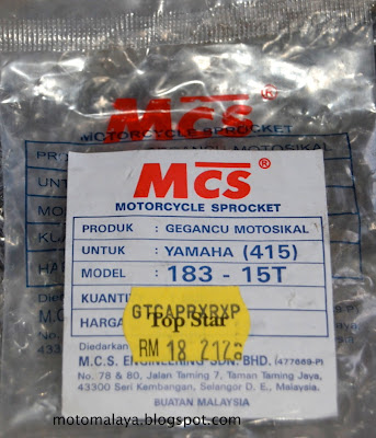 MCS is one of the sponsor of Malaysian Cub Prix. The quality has been proven in races in the series. 415 series sprocket and chain is considered race chain setup due to its closer teeth configuration and obviously lighter in weight compared to 428 and 420 setup.