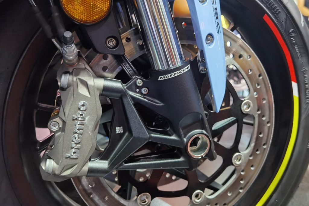 Pakej brek juga tampil premium dengan Brembo master-cylinder dipadankan bersama kaliper brek 4-pot berkembar Brembo M4 di depan dan kaliper brek 2-pot Brembo di belakang. Sistem brek juga menampilkan ABS dwi-saluran bersama cakera brek 320mm depan dan 260mm belakang.