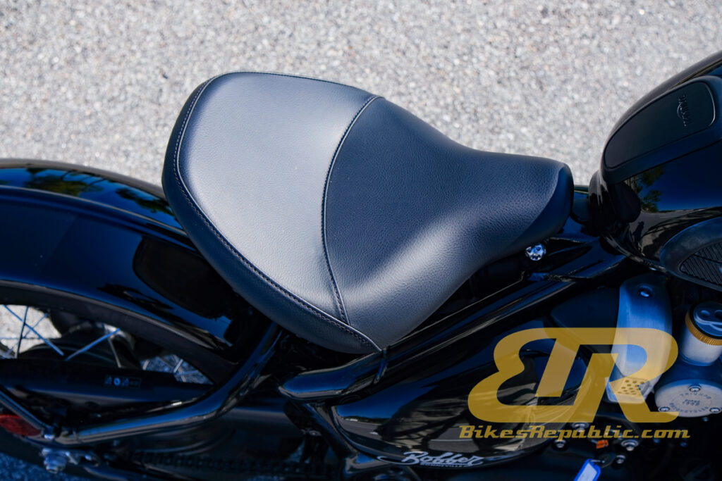 The seat had been set to the lower position, which also brought it further back from the tank. In this position, our arms were stretched straighter when gripping the handlebar, for the ‘proper’ drag bike upper body ergonomics. However, the footpegs are set in the middle position compared to fully up front placement like the first Bobber. A set of er… rearset footpegs would be nice for true drag-racing (more on this later).