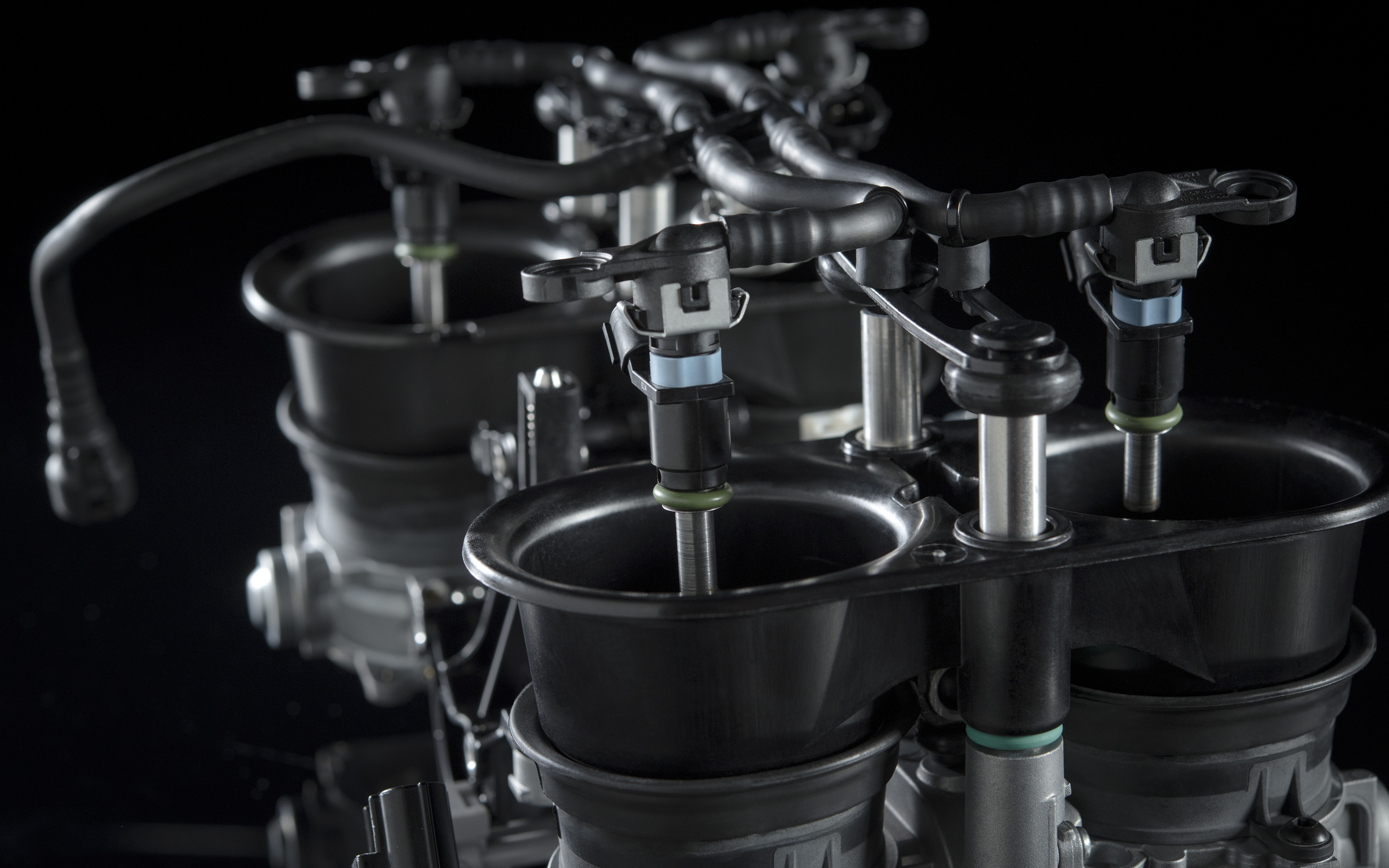 - Other features include variable length intake funnels, dual injectors per throttle body and oval throttle bodies.