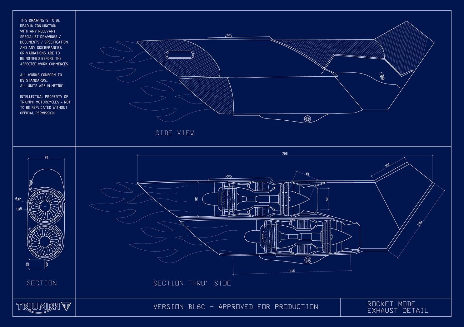 So, wouldn’t you like a pair of miniature jet engines that sit inside the exhaust pipes? On a Rocket III TFC, no less! Triumph even posted the blueprint for it. It promised 1,000 hp and available only on 1stApril 2019.