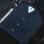 The long and slender fuel tank was hand beaten out of aluminium and comes with a traditional pop-and-twist tank cap. The seat design is also a masterpiece with its dark, perforated leather cover being decorated with Auto Fabrica’s logo plaque plus three small ‘eyelets’ that reveal contrasting yet discreet set of tan leather inserts.