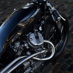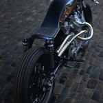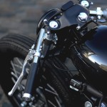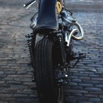 Up front, the Auto Fabrica Type 8 gets its forks shortened and now uses a pair of Maxton springs whilst the rear is gets a pair of Hagon twin shocks. The stock bike’s rather ugly Comstar wheels have also been swapped for new spoked design units. The front unit is lifted from the Honda CB450 TLS model and measures 19-inches whilst the rear’s a 16-inch unit laced into a Honda hub.