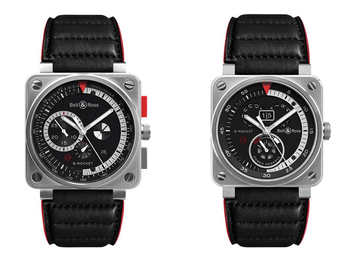Described as a direct offshoot of the B-Rocket, the BR01 B-Rocket watch is just as impressive as the bike. One of two versions, the BR01 B-Rocket features a mechanical, automatic movement. Its functions include hours, minutes and small seconds as well as datum tachymeter scale and chronograph, including 60-seconds, 30-minute and 12-hour readers. Measuring in at 46mm in diameter, the case is forged from satin-polished steel. The dial is matte black with metallic, luminous hour and minute hands. Comfort is provided by a padded black leather strap edged in red and black on heavy-duty canvas.