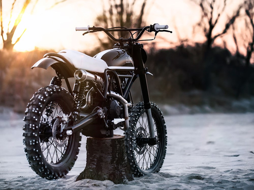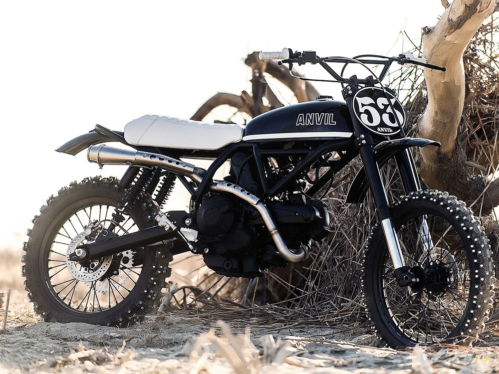 Starting off with the Scrambler R/T, this custom was built by Parma-based builders Avil Motociclette. Based off the new Ducati Scrambler Sixty2 model that features a smaller 399cc V-twin mill, this stripped down race scrambler took just 53 days to complete, hence the racing number it dons up front.