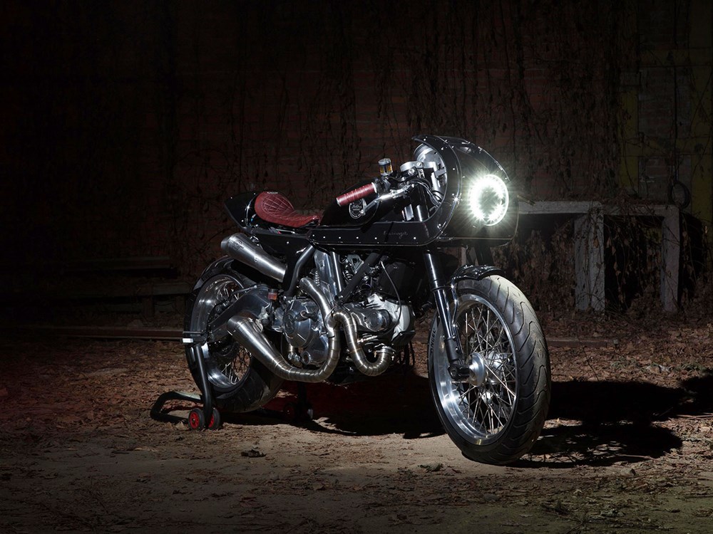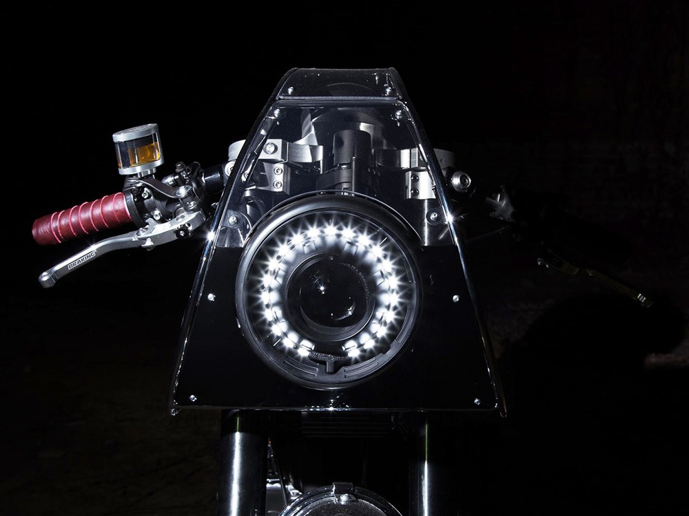 The LED headlamp surround is neat too while the custom red leather seat and handlebar grips adds some colour to the whole bike. Overall, it is easy to see how the Essenza café racer custom snatch away the Best In Show crown during the Verona show indeed.