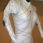 It is essentially an advanced pressure suit, with the intricate lines covering it representing the “lines of non-extension” – body parts that neither stretch nor contract during movement. The lines on the suit can be mechanically pressurised to compress against the body, but do so without restricting mobility.