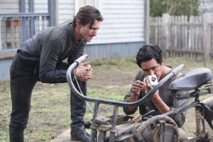 Bug: I wish that was really the case! All the guys that ride in the show really did ride and they went through a very extensive training. We must have had 35 stunt guys that rode more than 80 bikes built for the show. My character doesn’t actually get on a ride, but because I had so much riding experience and they wanted us to bond, they put me on one of the old bikes with Michiel, and we road for a couple of days.