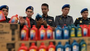 KPDNHEP officers and fake oil – Photo credit Nur Aisyah Mazalan for Kosmo Online