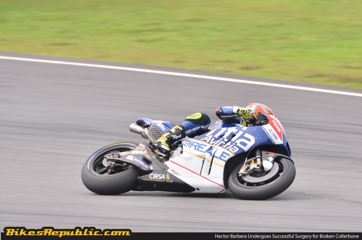 Hector Barbera’s recent injury wasn’t actually his first break. Barbera actually suffered a fracture on his right collarbone following a crash back in 2011 during the Japanese Grand Prix. The fracture obtained to his left collarbone needed almost two hours of time for Dr Xavier Mir to get it fixed with a titanium plate due to an old injury at the very same location.