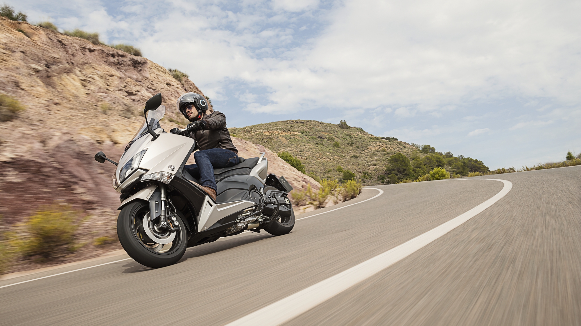 If you didn’t now already, the Yamaha TMAX maxi-scooter is powered by a DOHC 530cc liquid-cooled parallel-twin that develops nearly 46hp and 52.3Nm of torque. The mill is paired with Yamaha’s V-belt automatic transmission whilst the chassis features inverted front forks and dual disc brakes up front.