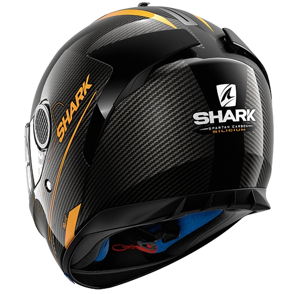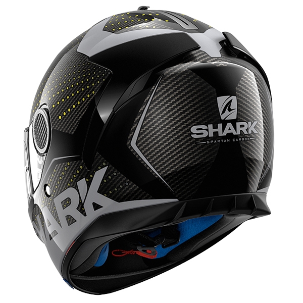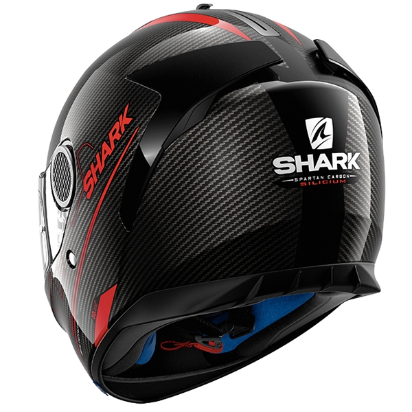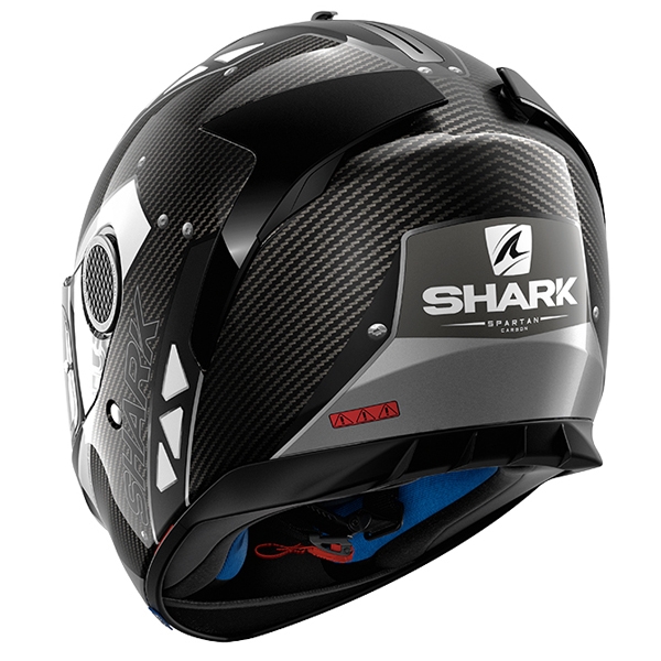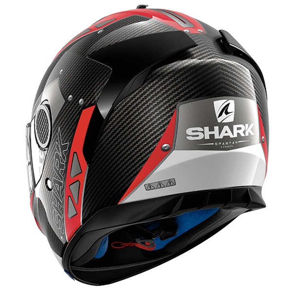 Another feature that has been highlighted on the Spartan Carbon is great ability to suppress noise and gain better stability at higher speeds. This has been achieved thanks to the patented ‘Shark Skin’ cover on the visor mechanism that dramatically reduces the deafening wind noise. A revolutionary double spoiler at the back of the lid works in tandem with rear air extractors to pull out any hot air from within the helmet and at the same time improve aerodynamic performance.