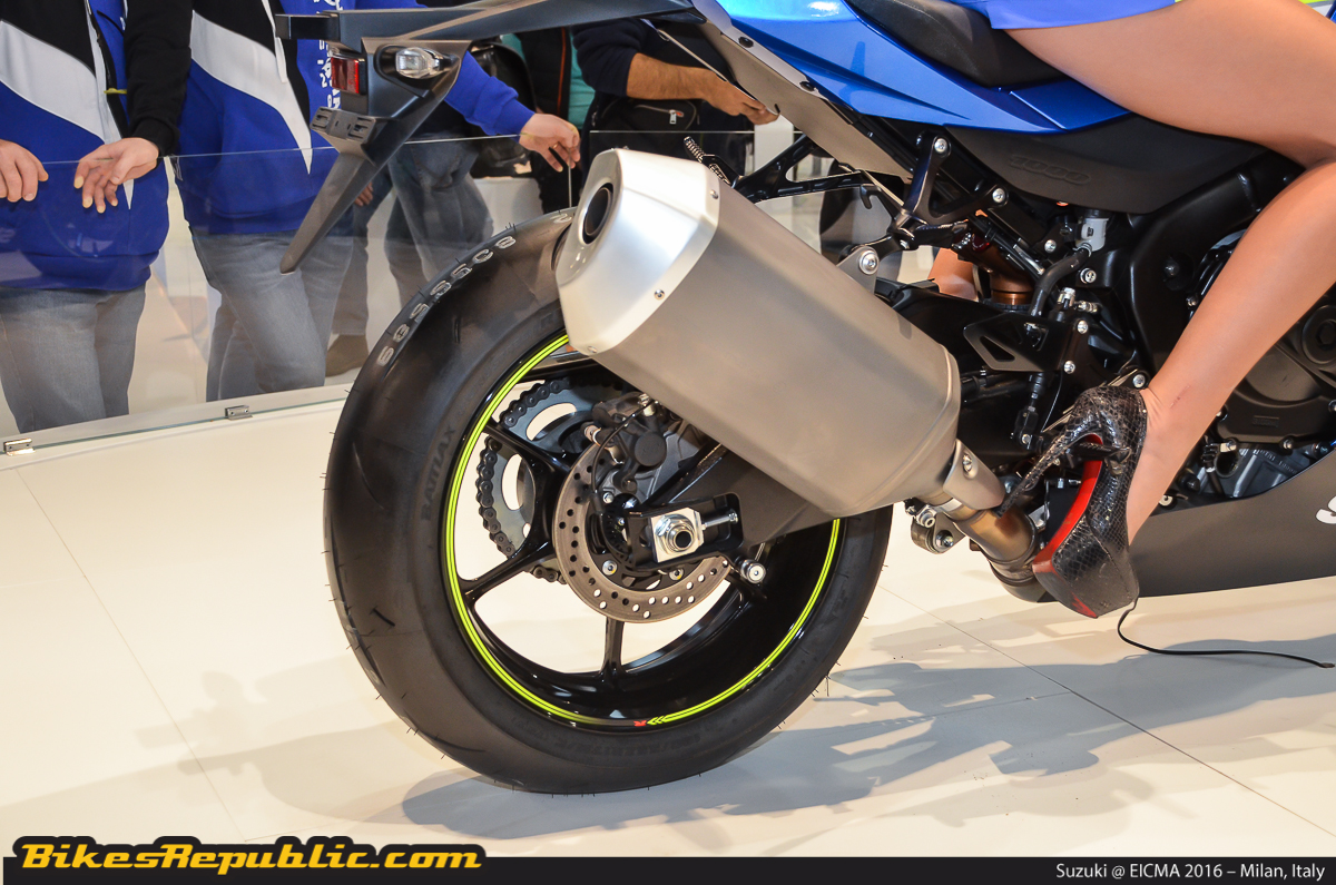 Having shown the more ‘basic’ GSX-R1000 version last year, Suzuki arrived in EICMA this year with its new racier GSX-R1000R version instead. Unlike the standard Gixxer 1000, the R version featured here gets a slightly enhanced features list.