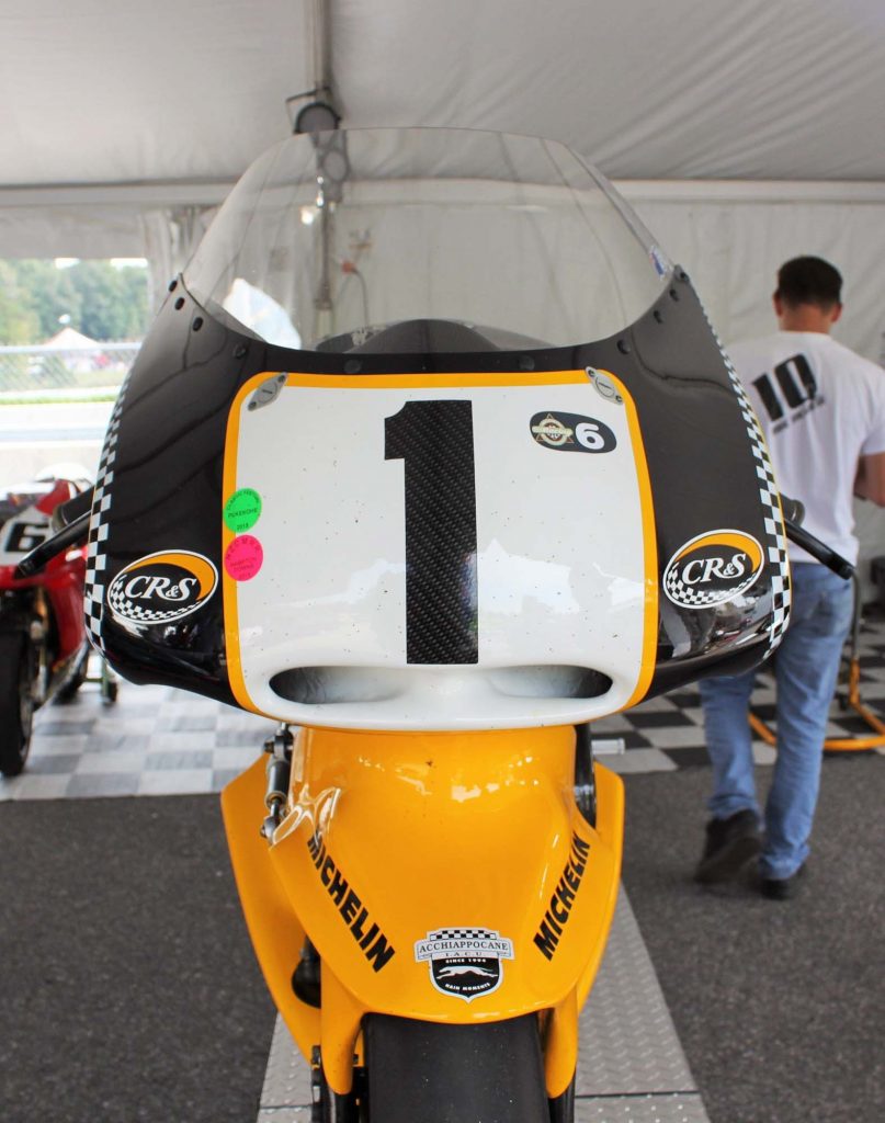 The radiator was mounted under the rider’s seat and intakes in the front of the fairing brought cooling air to it. It was done so to bring the front wheel closer to the engine to centralize mass and keep a short wheelbase, way before the major manufacturers had did anything about it.