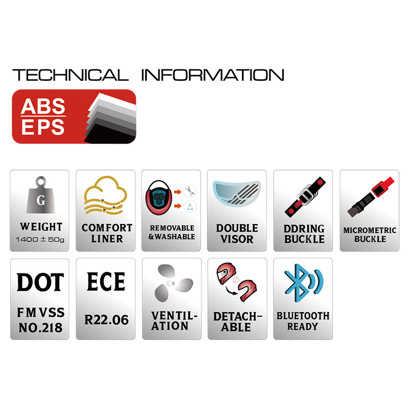- ECE R22.06 approved as J-type (jet type a.k.a. open-faced) helmet.