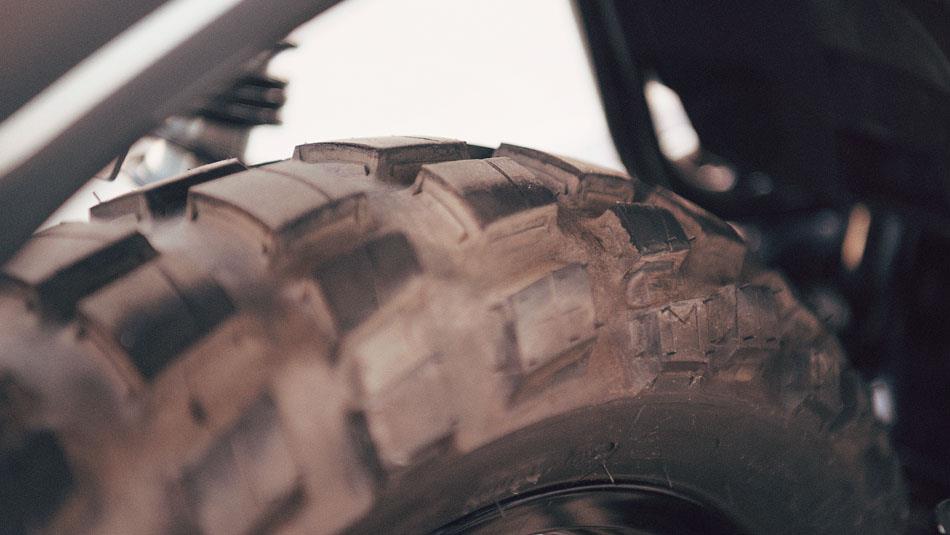 Brat Style’s Takamine also opted to prime the chassis with a custom rear suspension set by Works Performance that offer longer travel and increased ground clearance over the standard base bike’s hardware.