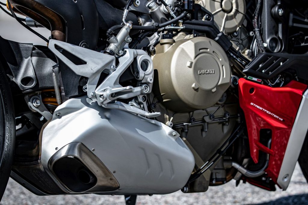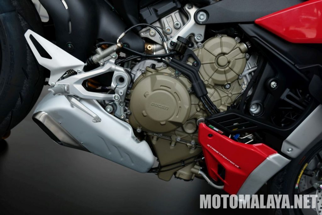 Ducati Streetfigher V4 didatangkan dengan enjin 1,103cc Desmosedici Stradale V4 yang menghasilkan 208 hp – kurang 6 hp daripada Panigale V4 – pada 12,750rpm dan 123Nm pada 11,500rpm.