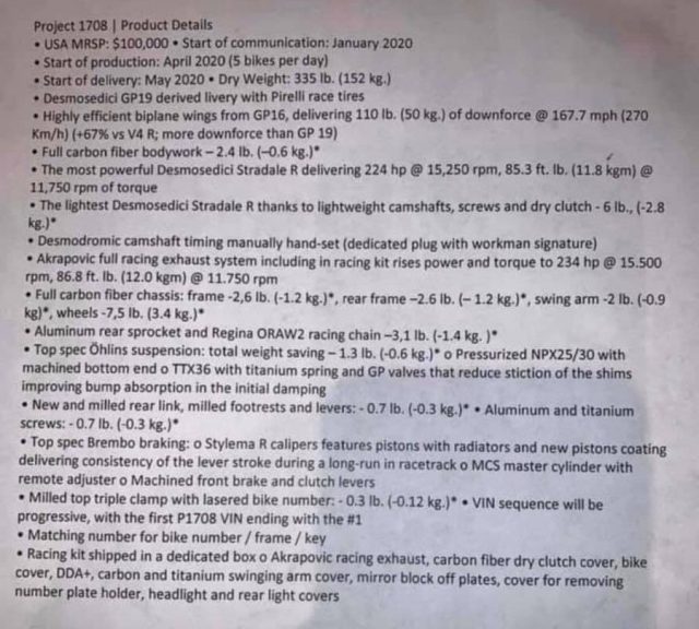 Berliner gembira dengan persembahan itu dan terus mencetak risalah untuk menjual motosikal itu. Mereka bercadang untuk menjual versi ‘normale‘ dengan kuasa yang dikurangkan kepada orang awam sebagai model jelajah, sambil mengekalkan versi ‘Sport‘ yang berkuasa penuh untuk penguatkuasa undang-undang. Malah, 65 hp dari V4 masih lebih berkuasa daripada enjin Harley yang menghasilkan hanya 55 hp.