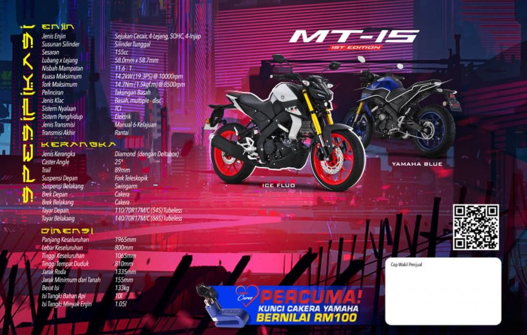 Enjin Yamaha Blue Core 155cc SOHC dengan VVA ini juga menawarkan peningkatan kuasa 15hp pada 8,000rpm dan 13.9Nm pada 6,500rpm berbanding model sebelumnya.