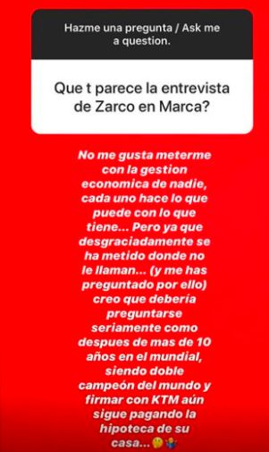 “Tetapi disebabkan dia berminat untuk bersuara tentang isu yang tiada kaitan dengannya, jadi saya rasa Zarco perlu bertanyakan kepada diri sendiri kenapa dia perlu berhutang sedangkan telah 10 tahun berada dalam arena MotoGP, menang dua kejuaraan dunia dan pernah menandatangani kontrak bersama pasukan factory KTM?” katanya.