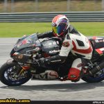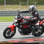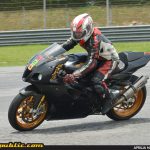 It had rained on the track from early morning and the open track day riders came back to report on a slippery track after their first session. However, the Aprilians were lucky as their sessions started close to noon and went on through late afternoon. The sun had started to shine and dried the track by then.