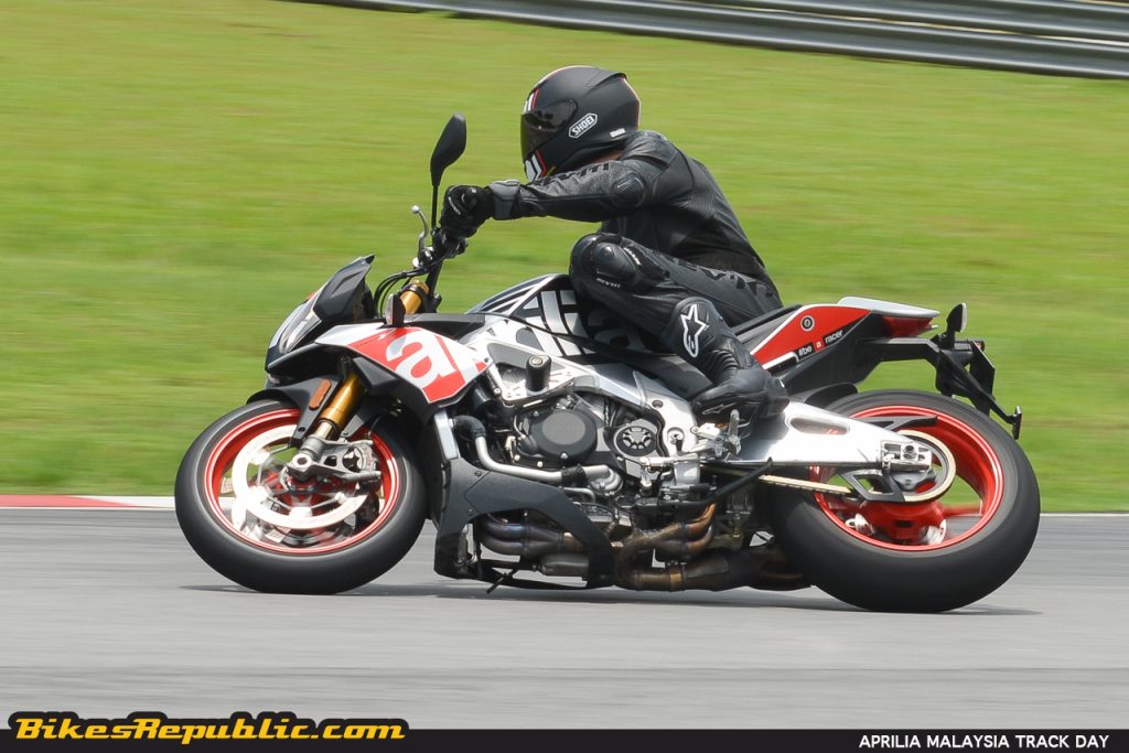 Indeed, we saw the Shiver 750, Tuono V4, SL1000R, RSV Mille (the father of the RSV4), RS250 two-strokes, and an SR-Max 300 scooter ridden by Khairul Hafiz.