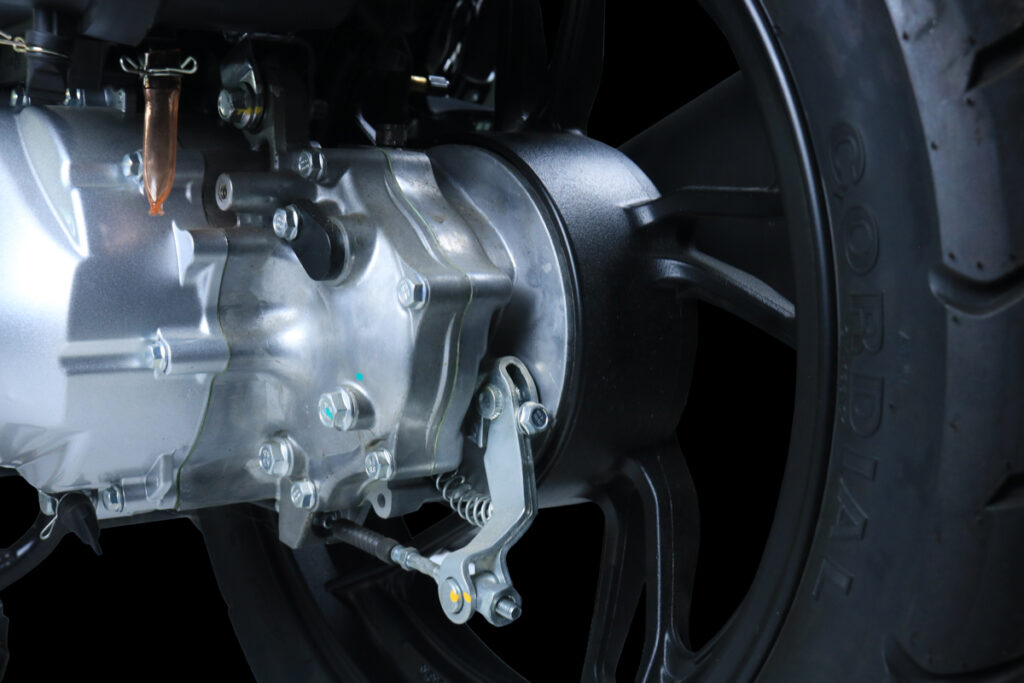 - Penghantaran kuasa melalui CVT dan pacuan akhir tali sawat (v-belt).