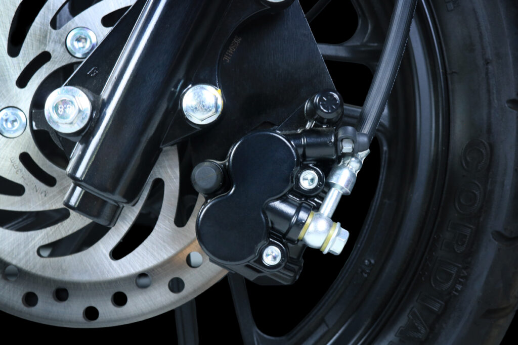 - Sistem brek terdiri daripada cakera tunggal di depan dan dram di belakang.