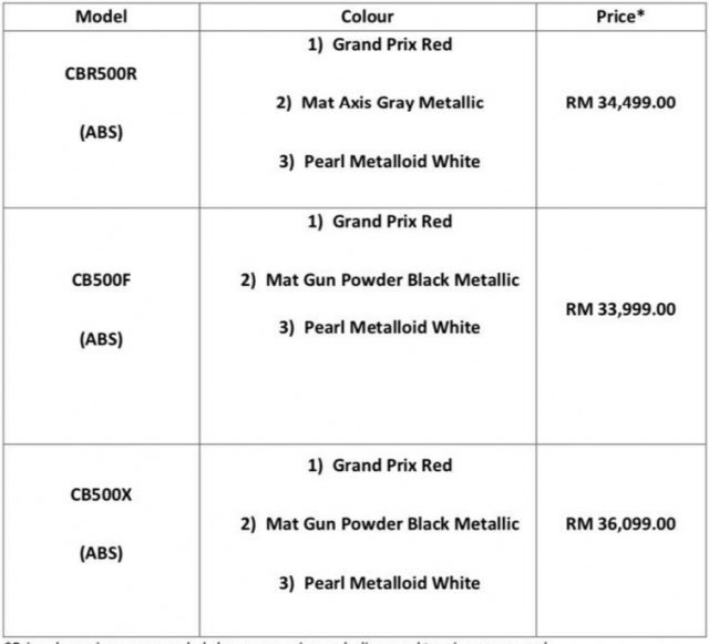 Tiga model baharu tersebut; CBR500R, CB500X dan CB500F dijangka akan menghangatkan lagi pasaran motosikal ‘mid range’ yang sering menjadi perhatian penggemar motosikal di Malaysia.